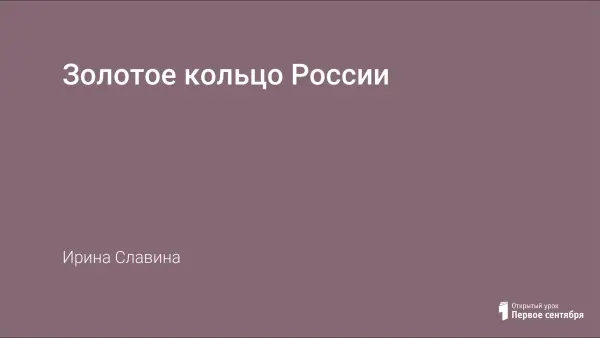 Урок позволяет совершить путешествие в древние русские города Золотого кольца. В ходе работы учащиеся получают ответы на вопросы: почему кольцо? почему золотое? какие города зачем создавались и чем знамениты? Работу можно использовать на уроке и внеклассном мероприятии.