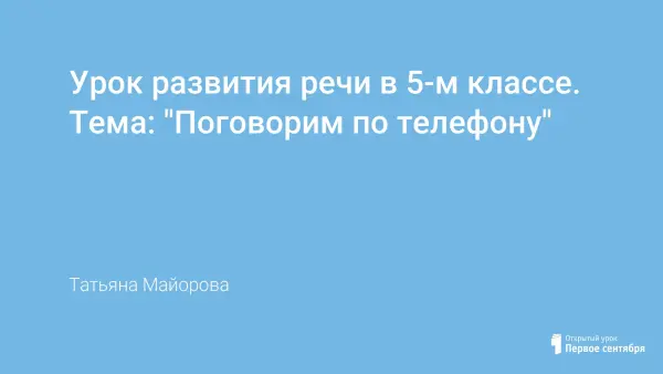 «Поговорим по телефону» – урок по речевому этикету. В программе уроков по развитию речи в 5-м классе предусмотрены темы «Диалог», «Предложения с прямой речью», «Обращение как средство выразительности речи». Поэтому для творческой мастерской выбран элемент такого урока, где ребятам предложена речевая ситуация, и им приходится не только применить свои знания в передаче прямой речи, но и проявить творческие способности, умение логически мыслить.
