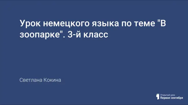 Урок был проведен в 3-м классе при изучении темы «Животные». Учащиеся работали с изученной лексикой по данной теме, а также учились описывать животных. В качестве дополнительного материала был предложен рассказ учителя на русском языке о Берлинском зоопарке. В конце урока ребятам было предложено рассказать о фантастическом животном с опорой на схему. На уроке было использовано мультимедийное оборудование, что позволило увеличить темп урока и сделать его более информативным.