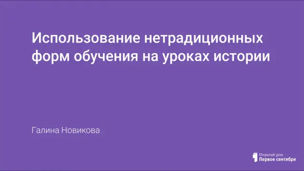 Эффективное изучение истории в школе возможно только тогда, когда преподаватель применяет разнообразные формы передачи знаний. Использование нетрадиционных форм работы на уроках позволяет стимулировать и мотивировать процесс познания у учащихся и вызывает живой интерес к процессу обучения. На таких уроках у школьников с различными способностями и уровнем знаний появляется возможность проявить себя и стать активными участниками учебного процесса.
