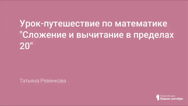 Урок закрепления ранее усвоенных навыков в форме путешествия, целью, которого является: закрепление навыков выполнения действий сложения и вычитания в пределах 20, активизация мыслительной деятельности учащегося при решении задач. Урок познавательный, способный возбудить интерес к учебной деятельности и снять напряжённость при ответах на вопросы заданий.