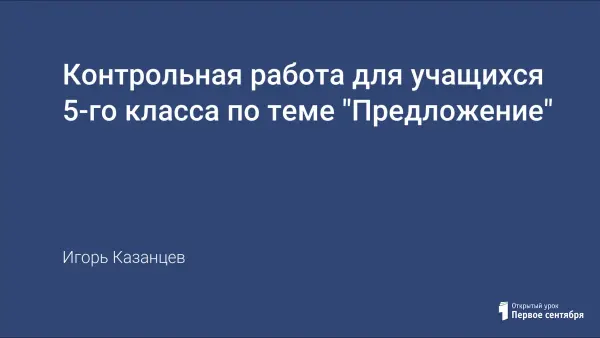 Контрольная работа для учащихся 5-го класса даёт возможность учителю не только диагностировать сформированность ЗУН учащихся по теме «Предложение», но и определить степень влияния формирования знаний по теме на ОУУН.