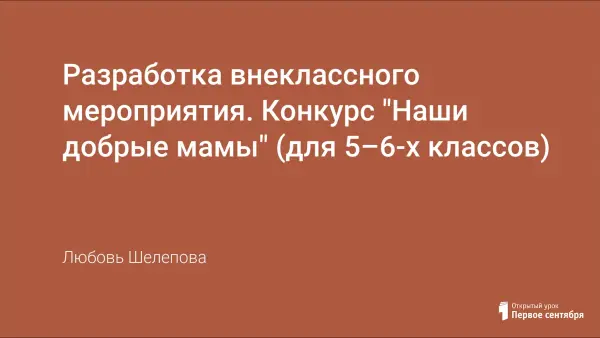 Предлагаемая работа представляет собой разработку внеклассного мероприятия, посвященному дню Матери. Работа направлена на воспитание чувства любви и уважения к женщине - матери, хранительнице тепла и уюта в доме. Конкурсы скрепляют отношение между матерью и ребенком.
