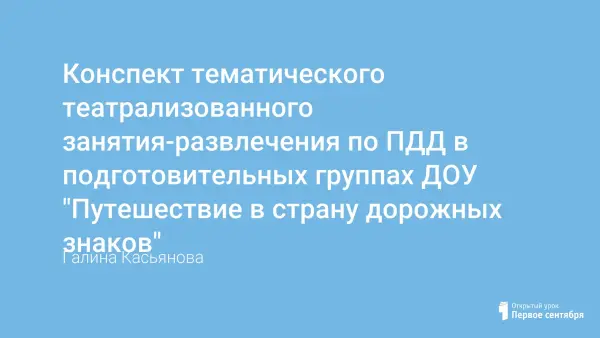 Предлагаю тематическое театрализованное занятие-развлечение по ПДД с детьми подготовительных групп, которое позволяет через сюрпризные моменты, игровые ситуации, различные виды дидактических игр закрепить познавательный материал о правилах дорожного движения, дорожных знаках и их назначении, привить дошкольникам навыки безопасного поведения на дорогах.