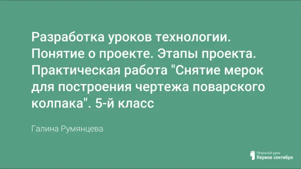 Работа описывает ознакомление учащихся на уроке технологии в 5-м классе с технологией работы над проектом, с основными разделами проекта.