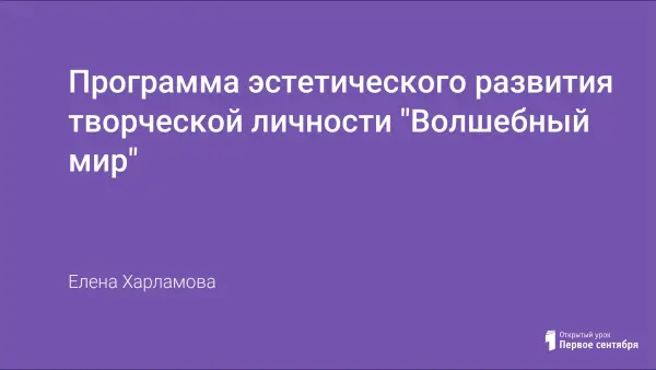 Предлагаемая программа развития творческой личности направлена на формирование эмоциональной стороны характера. Основной целью работы являются развитие творческих способностей личности, направленных на формирование эстетических индивидуальных способностей.