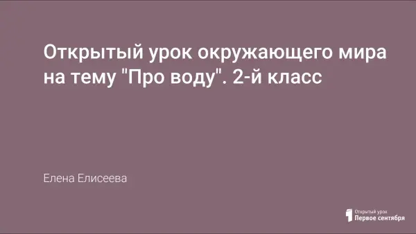 Открытый урок во 2-м классе по окружающему миру знакомит учеников с богатством природы – водой, ее некоторыми свойствами. Цели урока: прививать навыки здорового образа жизни; учить наблюдать, делать выводы, обобщать; воспитывать бережное отношение к природе.