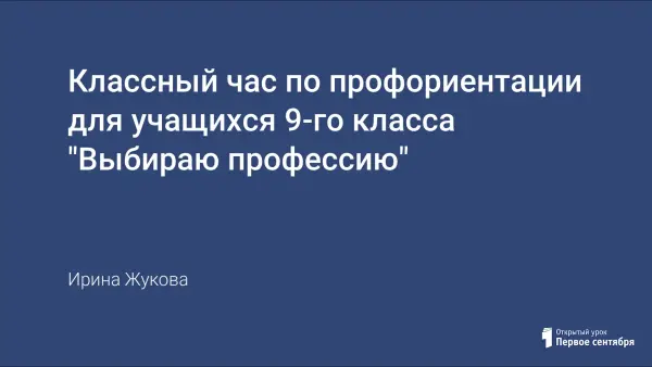 Профориентация - одно из направлений деятельности школьного психолога. Предлагаемый классный час проводится в начале 9-го класса в сентябре (или в конце учебного года 8-го класса). Классный час начинает цикл занятий по профориентации.