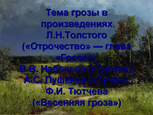 Тема грозы в произведениях Л.Н. Толстого, В.В.Набокова, А.С. Пушкина, Ф.И. Тютчева
