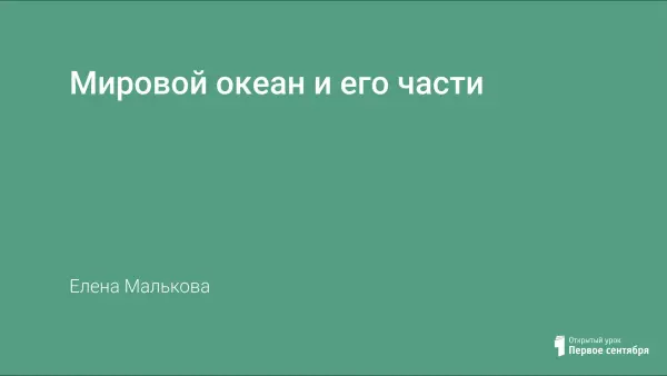 Автор формирует представление о Мировом океане и его составных частях. Урок раскрывает особенности строения дна океана. Презентация включает в себя теоретические, картографические материалы, задания, позволяющие отработать на практике теоретический материал, а также закрепить его.