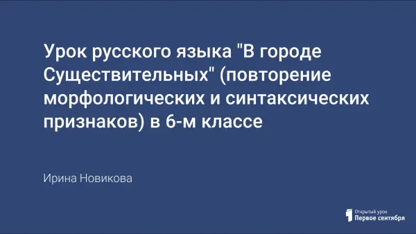 Цели урока: повторение изученного об имени существительном как части речи, его морфологических признаках и синтаксической роли; расширение сведений о роли имен существительных в речи; развитие у учащихся речи, мышления, памяти. Урок построен в форме путешествия по улицам и паркам города Существительных, что повышает интерес учащихся к теме урока и вызывает положительные эмоции.