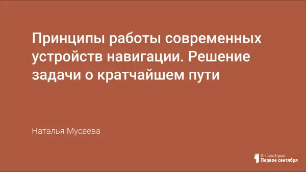 Урок знакомит учащихся с современными информационными устройствами, способами передачи и обработки данных, принципами работы GPS-навигатора. Интерес представляет теоретический материал по теме "Графы", пояснение алгоритма нахождения кратчайшего пути в графе методом Дейкстры. Для пояснения применения алгоритма приведена задача нахождения кратчайшего пути по городу Сочи на Красную поляну.