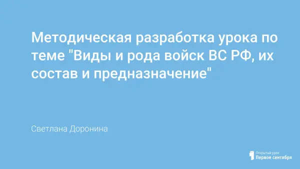 Основной целью урока является выявление особенностей вида и рода войск Вооруженных сил РФ и их роли в обеспечении обороноспособности страны. Для реализации технологии продуктивного обучения используется составление информационной карты по видам и родам войск ВС РФ после изучения различных источников информации. В ходе урока применяются ИКТ.