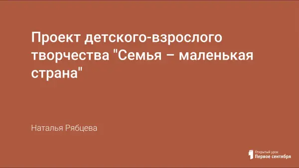 Проект детско-взрослого творчества с целью формирования новых подходов к становлению культуры родительства; способствовать укреплению и развитию сотрудничества детского сада и семьи в решении проблемы воспитания семьянина как к одной из приоритетных задач гражданского воспитания.