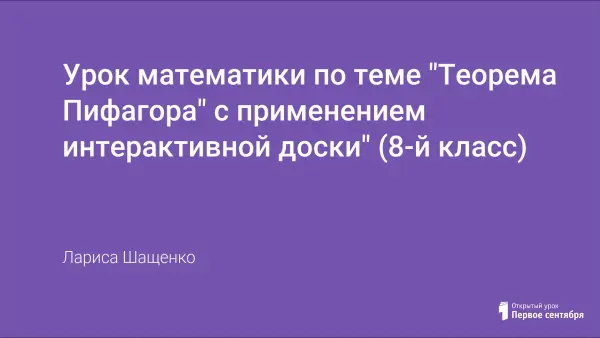 Урок объяснение нового материала с применением интерактивной доски и исторического материала. Цели урока: изучить теорему Пифагора, показать ее применение на практике для решения задач.