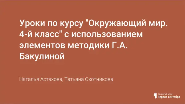Уроки по курсу "Окружающий мир. 4-й класс" с использованием элементов методики Г.А. Бакулиной