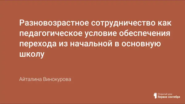 Разновозрастное учебное сотрудничество, где младшим подросткам предоставляется новое место в системе учебных отношений – место учителя детей из 1–5-х классов, может стать одним из существенных элементов школы, отвечающим возрастным особенностям детей. Место «младшего учителя» – посредника между взрослым и младшим школьником – в точности соответствует реальному положению подросткового возраста между детством и взрослостью.
