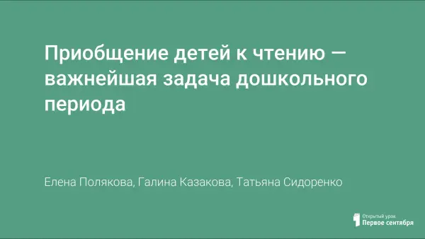 Приобщение детей к чтению — важнейшая задача дошкольного периода