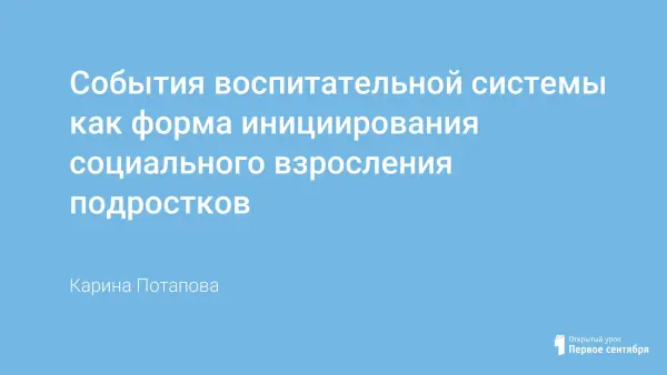 Реализация принципа событийности в воспитывающей среде предполагает наличие в жизни детей ярких, эмоционально насыщенных, незабываемых дел. Форма воспитательной системы "событийной общности" — взаимодействие детей и взрослых как "бытие". В такой воспитательной системе детство не подготовка к жизни, а сама жизнь. Экспериментальная деятельность, проведенная в нашей школе, выявила (и продолжает выявлять) педагогические условия модуса воспитательной системы как фактора взросления. Мы разрабатываем и внедряем инновационную технологию инициирования субъектной позиции (формирование способности осознанного выбора).