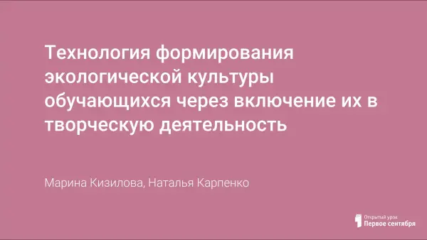 Технология формирования экологической культуры обучающихся через включение их в творческую деятельность
