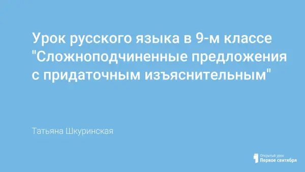 В данной статье представлена разработка урока в 9-м классе на закрепление полученных знаний о сложноподчинённых предложения с придаточными изъяснительными. Урок снабжён мультимедийной презентацией.