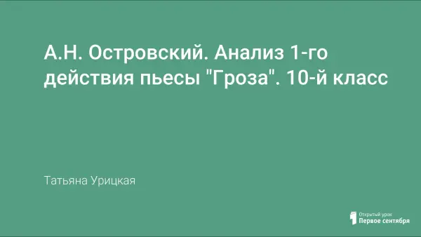 Цель урока – познакомить с историей создания пьесы "Гроза", её действующими лицами, определить тему, идею, основной конфликт пьесы; развить навыки анализа драматического произведения, умение определять в произведении авторскую позицию, воспитать нравственную читательскую позицию учащихся, интерес к русской классической литературе, истории и культуре России.