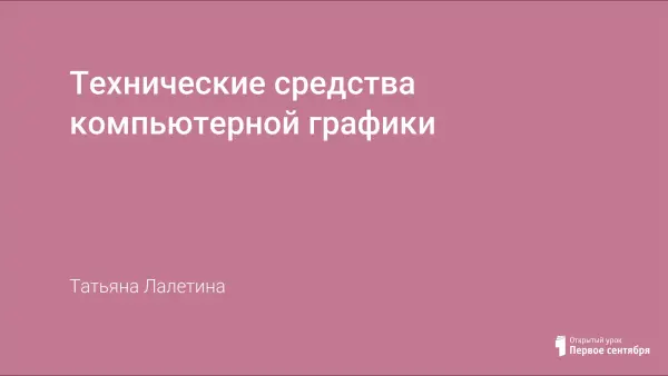 Рассмотрены технические средства компьютерной графики: схема вывода изображения на экран, принципы работы растровых дисплеев, жидкокристаллических мониторов, видеоадаптера и основная характеристика - объем видеопамяти.