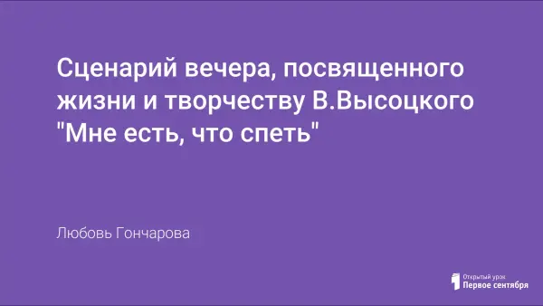 Внеклассное мероприятие подготовлено ко дню памяти Владимира Высоцкого и рассчитано на обучающихся старших классов. В доступной форме рассказано о жизни, работе в театре, кинопробах гениального поэта. В сценарии включены песни В.Высоцкого. Роль ведущего и поэта исполняют учащиеся старших классов. Подобраны фотографии, иллюстрирующие короткий жизненный путь "поющего нерва эпохи".