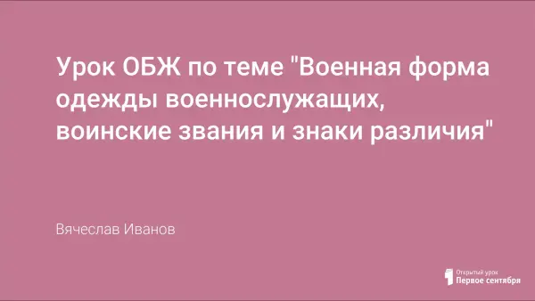 Основная идея проведения этого урока состоит в том, чтобы учащиеся ознакомились с основными видами военной формы одежды различных родов войск, запомнили все воинские звания, обратили внимание на многочисленные знаки различия военнослужащих.