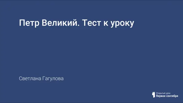 Представлен к уроку истории проверочный тест по теме: «Пётр Великий».