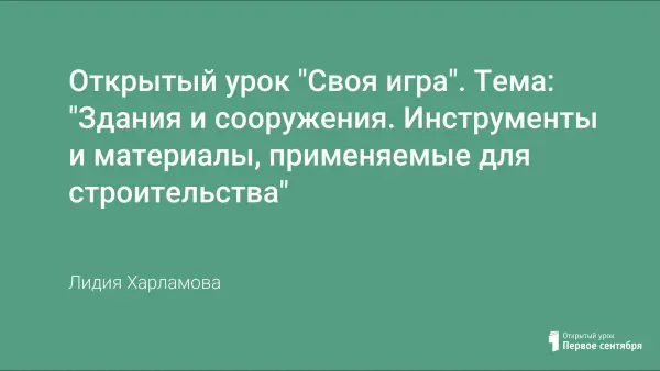 Открытый урок "Своя игра". Тема: "Здания и сооружения. Инструменты и материалы, применяемые для строительства"