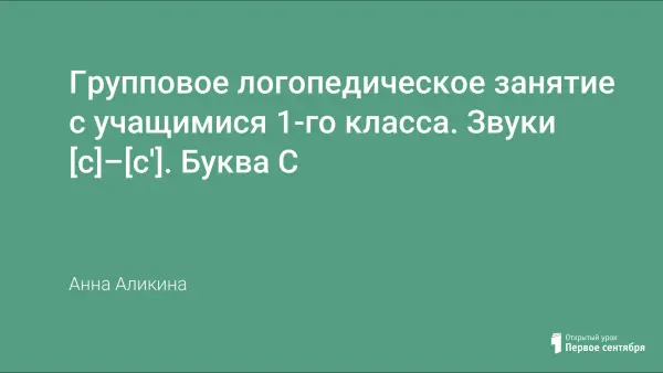 Групповое логопедическое занятие с учащимися 1-х классов с фонетико-фонематическим и общим недоразвитием речи IV уровня соответствует I этапу коррекционно-развивающего обучения – восполнение пробелов в развитии звуковой стороны речи. Раскрываются приемы работы по различению согласных по твердости-мягкости на примере звуков [с] – [с’], дифференциации буквы «с» от сходных по написанию букв, развитию пространственной ориентировки, совершенствованию лексико-грамматической стороны речи.