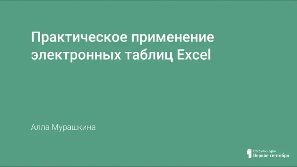Урок закрепляет знания, умения и навыки решения задач с помощью ЭТ. Расширяет представление о практическом применении ЭТ для решения прикладных задач.