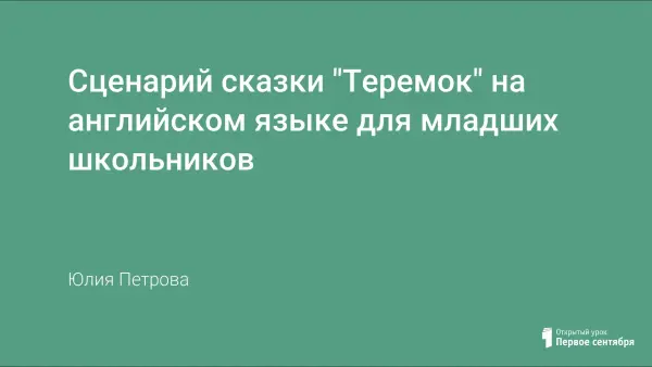 Внеклассное мероприятие предназначено для учащихся 2–3-х классов. Цель мероприятия – обобщение и систематизация знаний. Участие в таких уроках-спектаклях способствует развитию памяти и творческих способностей учащихся, повышению мотивации к изучению иностранного языка. В основу сценария легла известная русская народная сказка «Теремок».