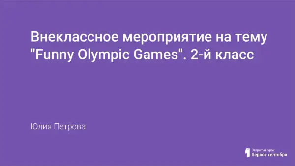 Внеклассное мероприятие для 2-х классов повторяет пройденный материал, совершенствует навыки произношения, формирует знания об истории Олимпийских игр, развивает физические качества: силу, ловкость, выносливость, быстроту.