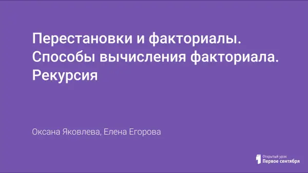Перестановки и факториалы. Способы вычисления факториала. Рекурсия