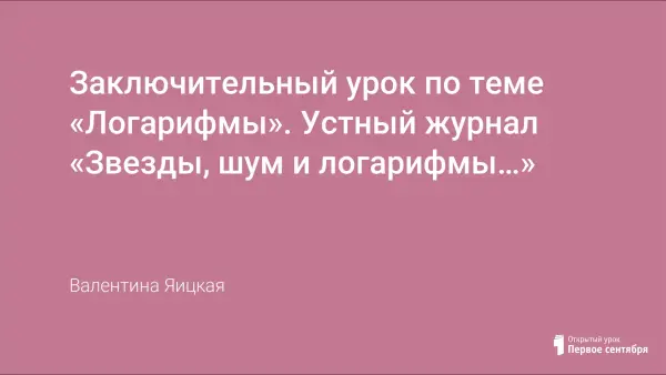 Устный журнал «Звезды, шум и логарифмы…» посвящен логарифмам и их применению в самых различных областях науки, техники и окружающей жизни. Занятие убеждает в том, что математика – универсальный язык, используя его как инструмент познания мира, можно увидеть в нём гармонию, красоту, а самое главное, проявление закономерности в вещах, на первый взгляд никак между собой не связанных.