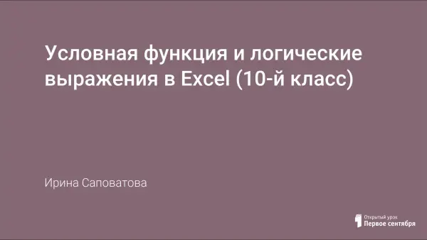 Данный материал является разработкой урока по информатике в 10-м классе. Основной целью данного урока является усвоение учащимися общего вида и правил выполнения условной функции, обучение применению ее при решении задач, повторение логических выражений и изучение особенностей записи логических выражений в электронных таблицах.