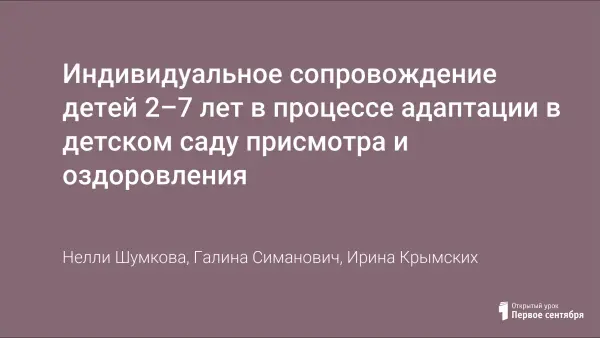 Индивидуальное сопровождение детей 2–7 лет в процессе адаптации в детском саду присмотра и оздоровления