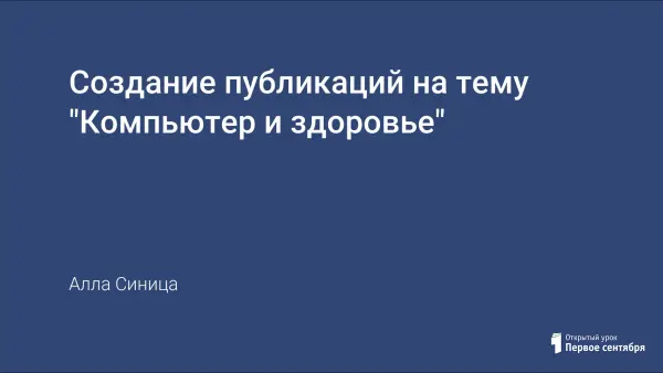Занятие можно провести с учащимися 4–9-х классов. Программное средство Microsoft Office Publisher легко осваивается учениками. Алгоритмы создания конкретных публикаций помогут ученикам достичь поставленной цели в считанные минуты. В ходе работы над публикациями учащиеся не только научатся пользоваться программным средством Microsoft Office Publisher, но и задумаются о влиянии компьютерной техники на здоровье человека и организации правильной работы за компьютером.