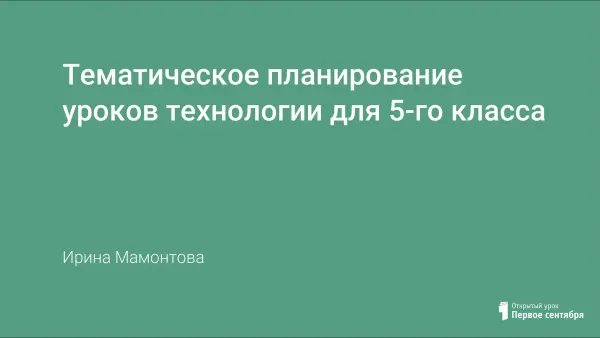 Тематическое планирование рассчитано на 34 учебные недели (68 часов в год) при количестве 2 часов в неделю. В планировании указаны типы уроков, основные виды деятельности и контроля на уроке. Логично изучение темы «Кулинария» после того, как сшит фартук, в котором девочки могут заниматься практическими работами. Автор начинает работу в 5-м классе с изучения темы «Материаловедение», далее «Рукоделие. Вышивка».