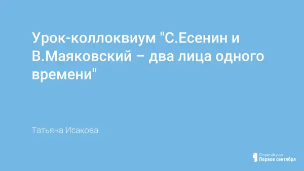 Урок-коллоквиум "С.Есенин и В.Маяковский – два лица одного времени"