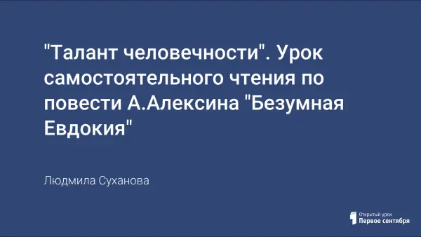 На уроке в процессе обсуждения повести учащиеся 9-го класса знакомятся с повестью ныне незаслуженно забытого писателя А.Алексина. Учитель ставит задачу развития исследовательских навыков работы с текстом, навыков анализа текста, устного монологического высказывания, письменного отзыва на прочитанное произведение. Урок направлен на воспитание таких важных нравственных качеств личности, как ответственность за своих близких, умение сопереживать, не быть равнодушным.