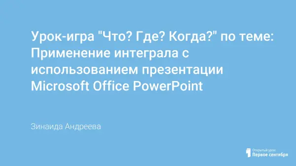 Урок «Применение интеграла» проводится в форме игры «Что? Где? Когда?» и является обобщающим по теме «Интеграл». Цель урока: применение интеграла в решении задач, ориентированных на обнаружении и изучении многообразия связей между физическими и математическими величинами.