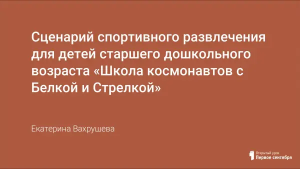 В статье представлена методическая разработка сценария спортивного развлечения ко Дню космонавтики «Школа космонавтов с Белкой и Стрелкой» для детей старшего дошкольного возраста. В игровой форме дети знакомятся с профессией космонавт, особенностями подготовки космонавтов. Представленное мероприятие способствует развитию физических качеств детей, закреплению основных видов движения. Участие в играх-эстафетах воспитывает целеустремленность, волю к победе, чувство ответственности перед участниками команды, чувство дружбы и взаимопомощи.