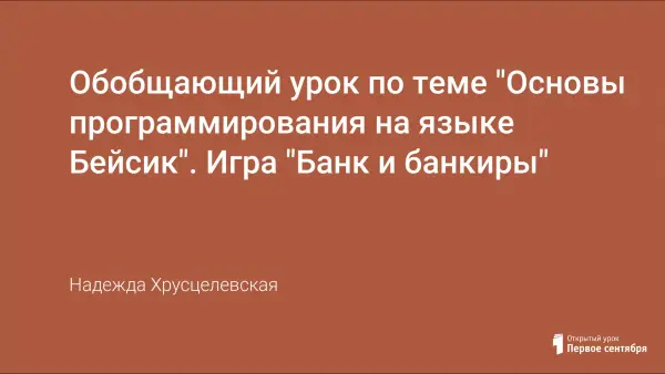 Урок построен на деятельной основе с использованием игровой технологии. Главная цель урока - повторение и обобщение знаний о системах счисления, представлении информации в ЭВМ и программировании на языке Basic с использованием дополнительного материала во время игры.