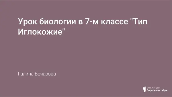 На уроке учащиеся изучают особенности строения и жизнедеятельности иглокожих, их значение в природе и жизни человека. Изучают особенности каждого класса, устанавливают характерные черты типа. Урок способствует воспитанию бережного отношения к природе, формированию научного мировоззрения. В необычной форме «Магического лабиринта» помогает проконтролировать усвоение учащимися предыдущего материала. Урок разработан в соответствии с программой по биологии для 7-х классов.