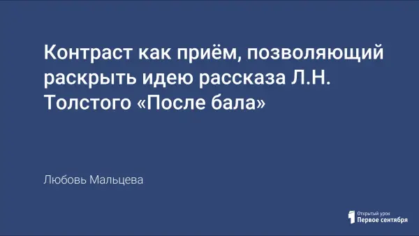 Данный урок входит в систему уроков по изучению рассказа Л.Н. Толстого «После бала». Задача его состоит в том, чтобы показать, как, контрастно противопоставляя две сцены, Толстой срывает маску с внешне благополучной действительности и вскрывает противоречия жизни в России 40-х годов XIX века.