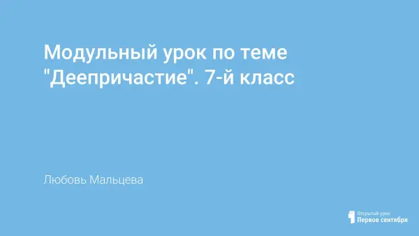 В модульном обучении применяется самооценка, которая приучает ребенка объективно оценивать свои способности, результаты своего труда. В ходе урока ученики знакомятся с лексическим и грамматическим значением деепричастия как части речи; изучается написание "не" с деепричастиями; развивается умение находить деепричастие в предложениях, со способами образования деепричастий совершенного и несовершенного вида.