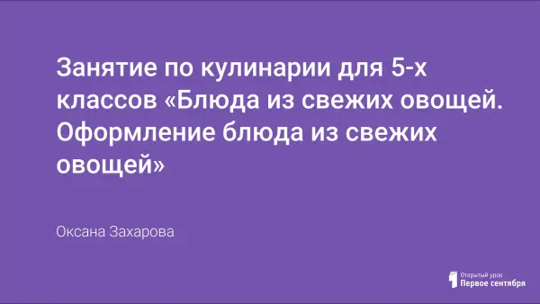 Урок по технологии для девочек 5-го класса. На уроке учащиеся знакомятся с первичной обработкой овощей, с формой нарезки овощей и способами оформления салатов с помощью фигурной нарезки овощей.
